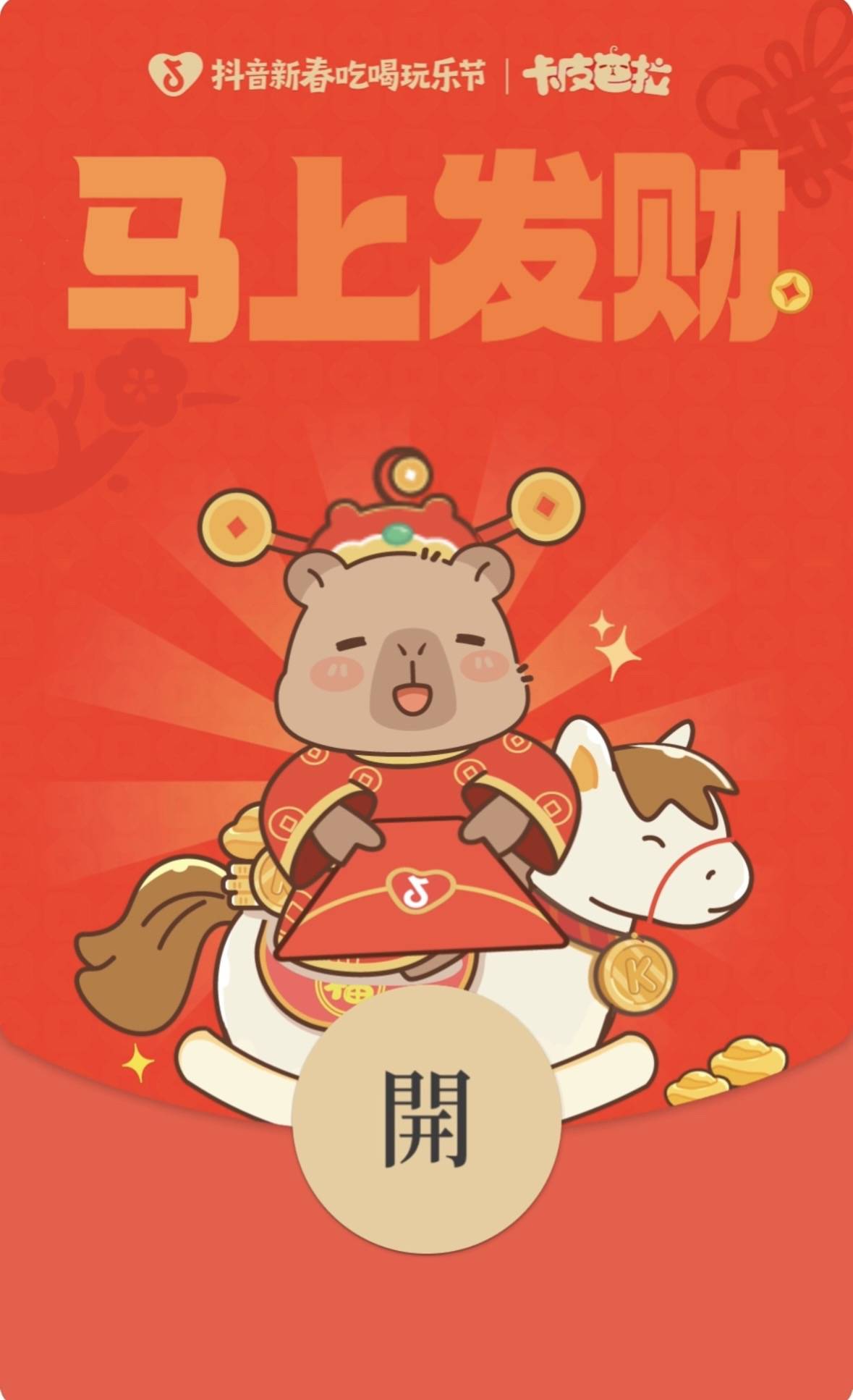 本次年货节精准洞察当代年轻人备年心态,以全民级治愈 IP “卡皮巴拉” 为情感切口,将软萌松弛的形象与春节氛围完美融合,同步上线联名红包、专属表情包等趣味内容,让萌趣感贯穿新年全场景。活动还特别上线卡皮巴拉马年限定套餐,购买即可领取限定周边,实现“线上种草、线下进店领赠品”的心动体验闭环,让大家在抖音 “团购备年” 不仅体验到十足年味,更感受到梦幻联动背后的满满 “新” 意。